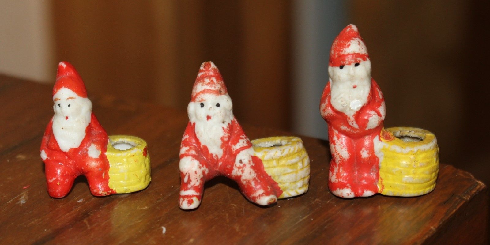 Title (ebay affiliate link): Three Miniature Bisque Elves, All with yellow Candle Holders. Japan 1920s