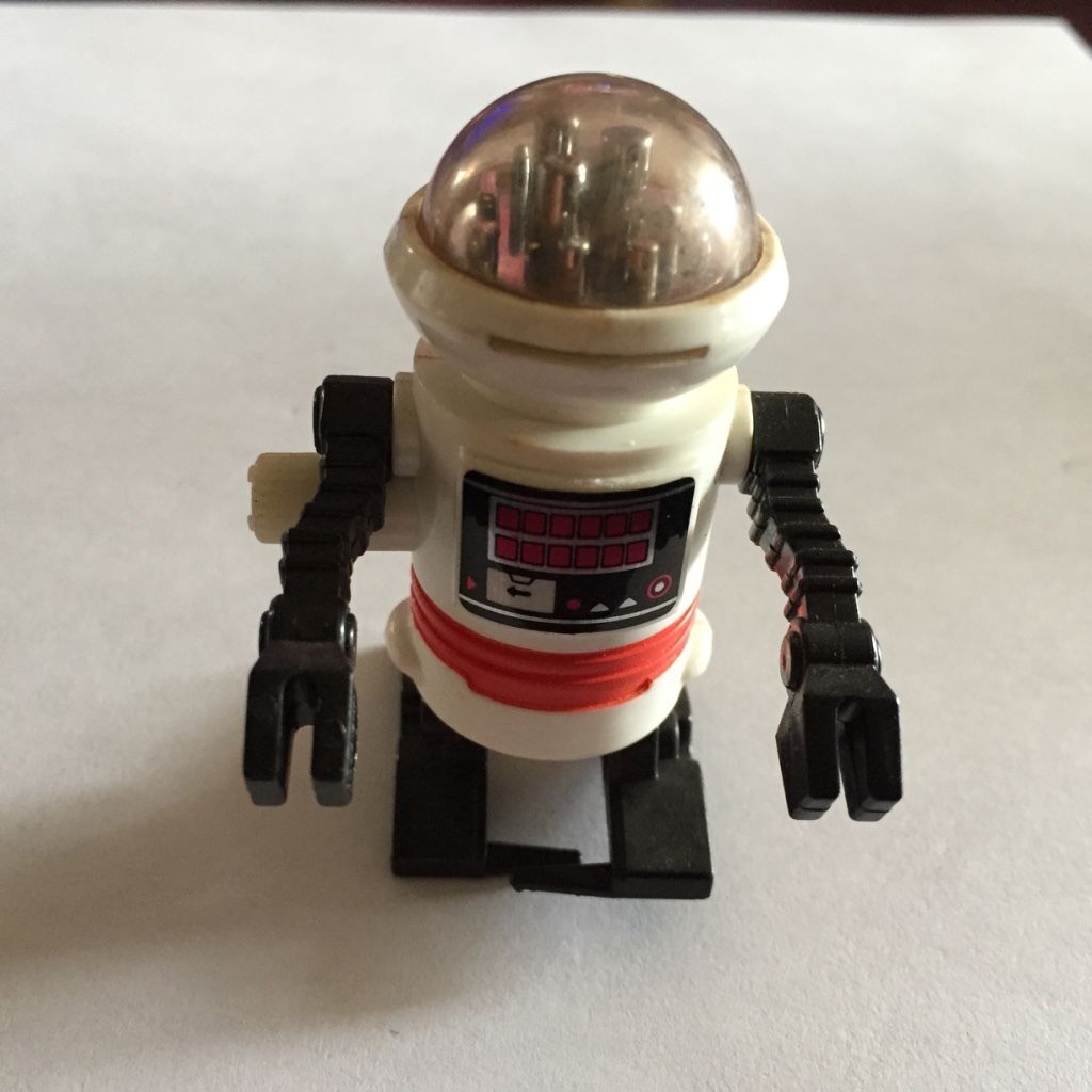 Title (ebay affiliate link): Vtg Robot TOMY Taiwan Classic Wind Up Toy Space Walk White Plastic Clear Dome