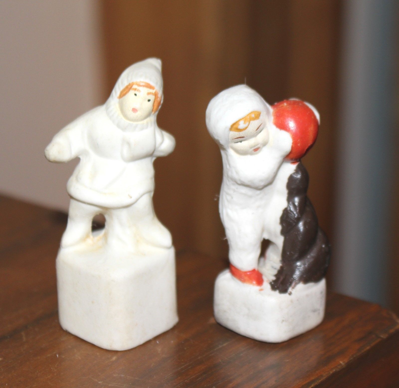 Title (ebay affiliate link): Snow baby holding Ball over Seal. Girl Skater. Two Bisque Figures Japan. 1930s