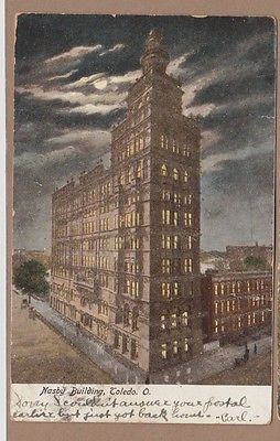 Title (ebay affiliate link): Toledo, Oh/ Nasby Building/ night view/ moon shining/ non-linen postcard