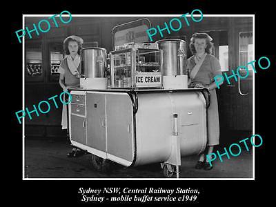 OLD LARGE HISTORIC PHOTO OF SYDNEY CENTRAL RAILWAY STATION BUFFET CART 1949 NSW