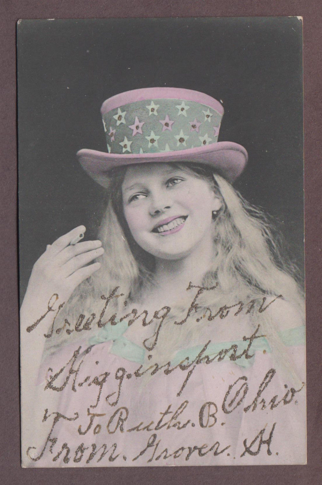 Higginsport Ohio c1910 Postcard Girl In Starred Patriotic Hat Smoking Cigarette