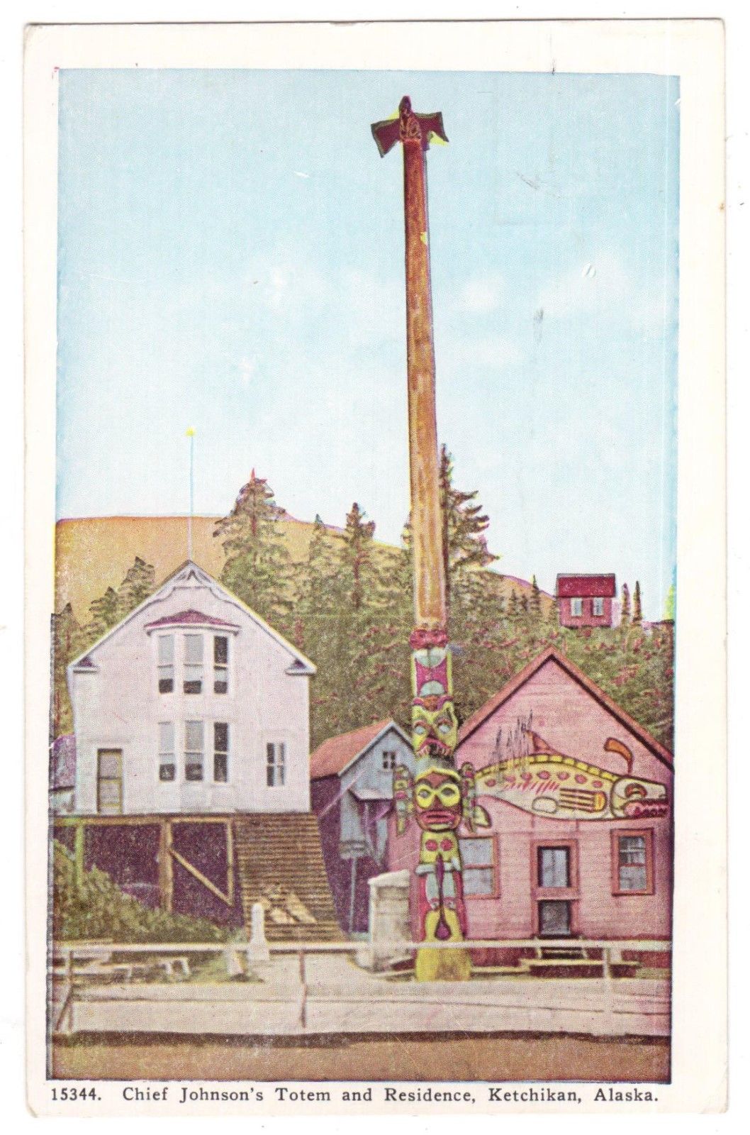 ANTIQUE 1920'S CHIEF JOHNSON'S TOTEM & RESIDENCE KETCHIKAN ALASKA POSTCARD