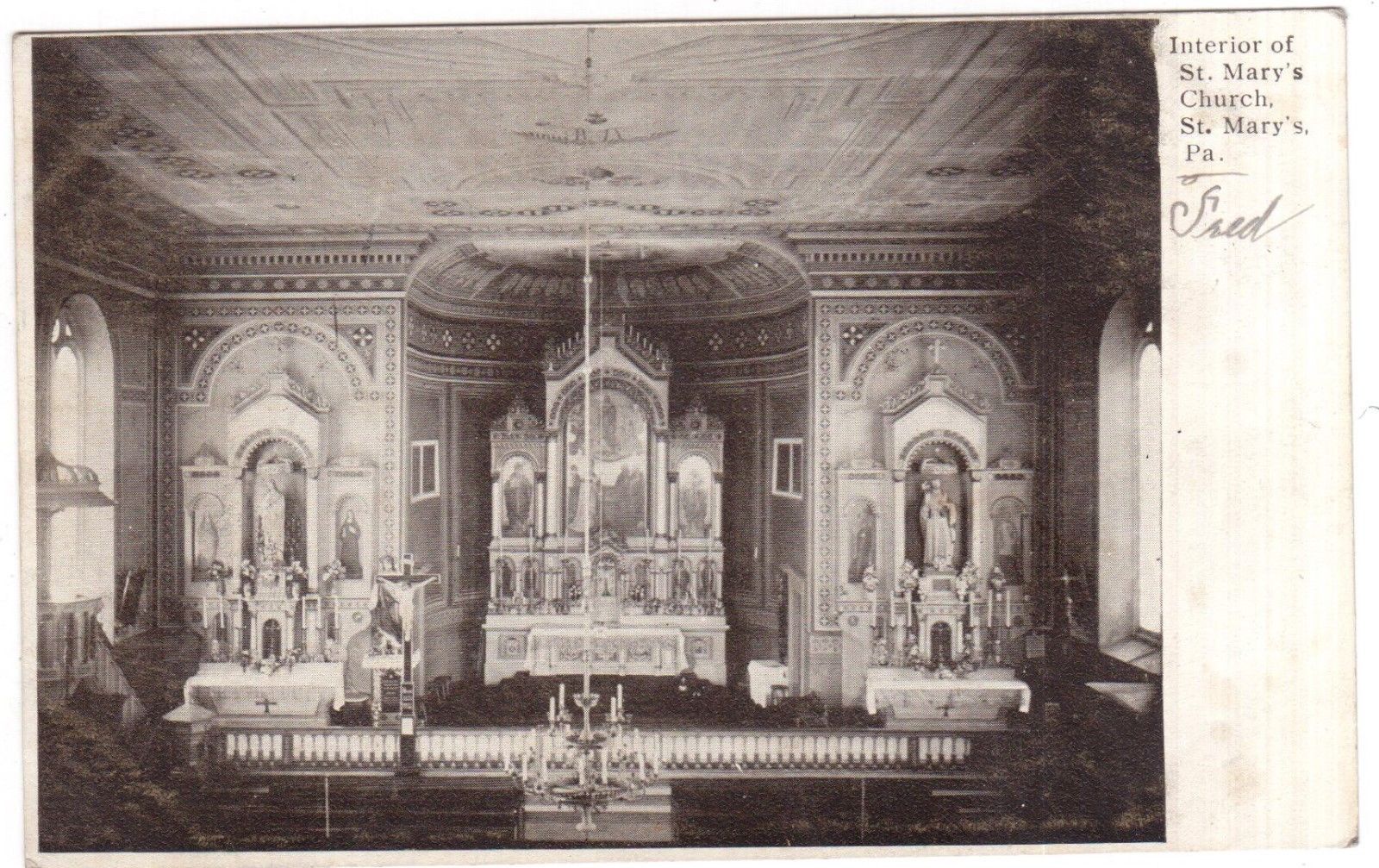 Title (ebay affiliate link): ANTIQUE 1906 UDB INTERIOR OF ST. MARY'S CHURCH ST. MARY'S PENNSYLVANIA POSTCARD