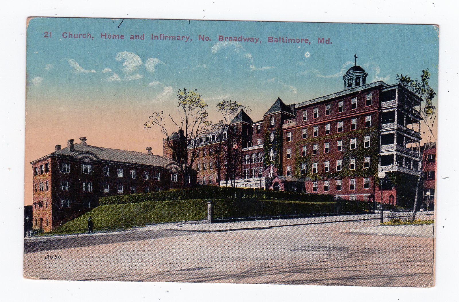 OLD POSTCARD CHURCH, HOME & INFIRMARY NORTH BROADWAY BALTIMORE MARYLAND MD 1915