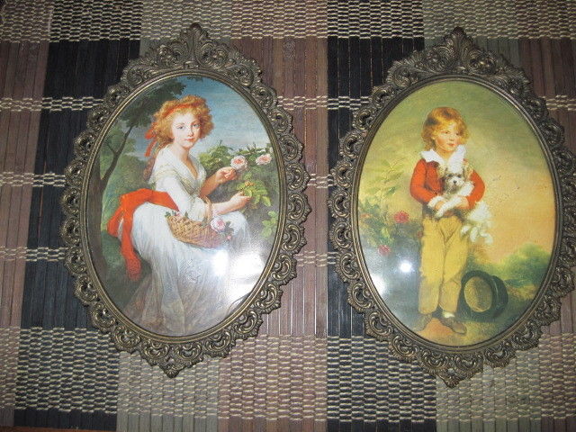 Title (ebay affiliate link): Vintage Action Ornate Bubble Glass Oval Brass Picture Frames & Victorian Print