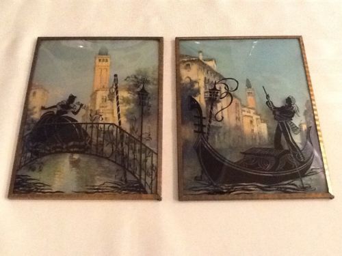 Title (ebay affiliate link): 2 Vtg. Silhouette Venetian Scene 1940's Prints Convex/Curved Glass Copper Frames