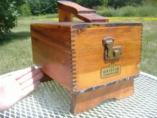 Title (ebay affiliate link): Vintage GRIFFIN SHINEMASTER WOOD SHOE SHINE POLISH STORAGE BOX Tongue & Groove