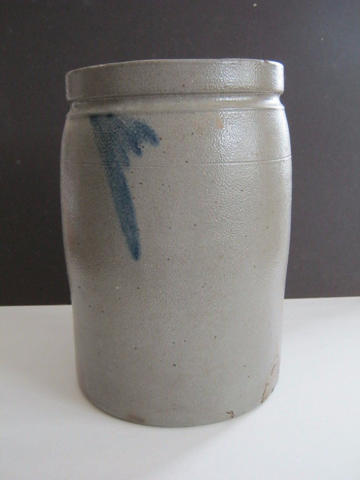 ANTIQUE SALT GLAZE CROCK, 1 GALLON, COBALT DECORATION