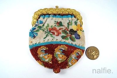 ANTIQUE PINCHBECK & FLORAL BEAD WORK COIN PURSE C1830 $1 NO RESERVE