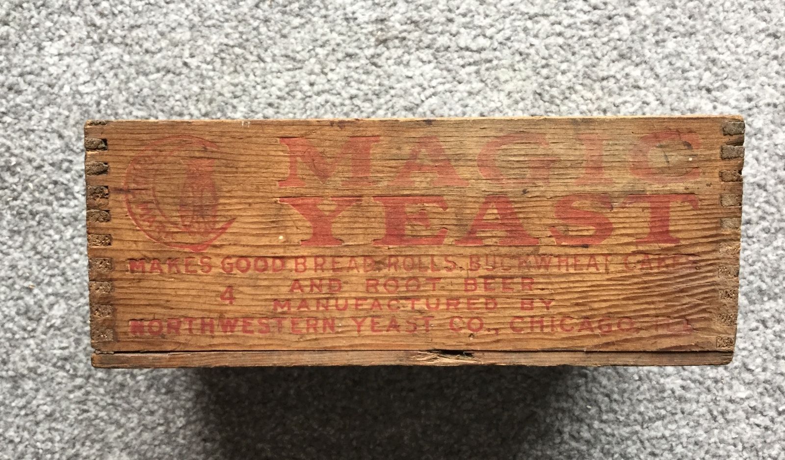 VINTAGE MAGIC YEAST DOVETAIL WOOD SHIPPING CRATE ADVERTISING BOX OWL LOGO