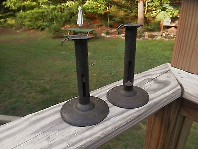Pair Antique 19th Century Hogscraper Candlesticks NICE Primitive