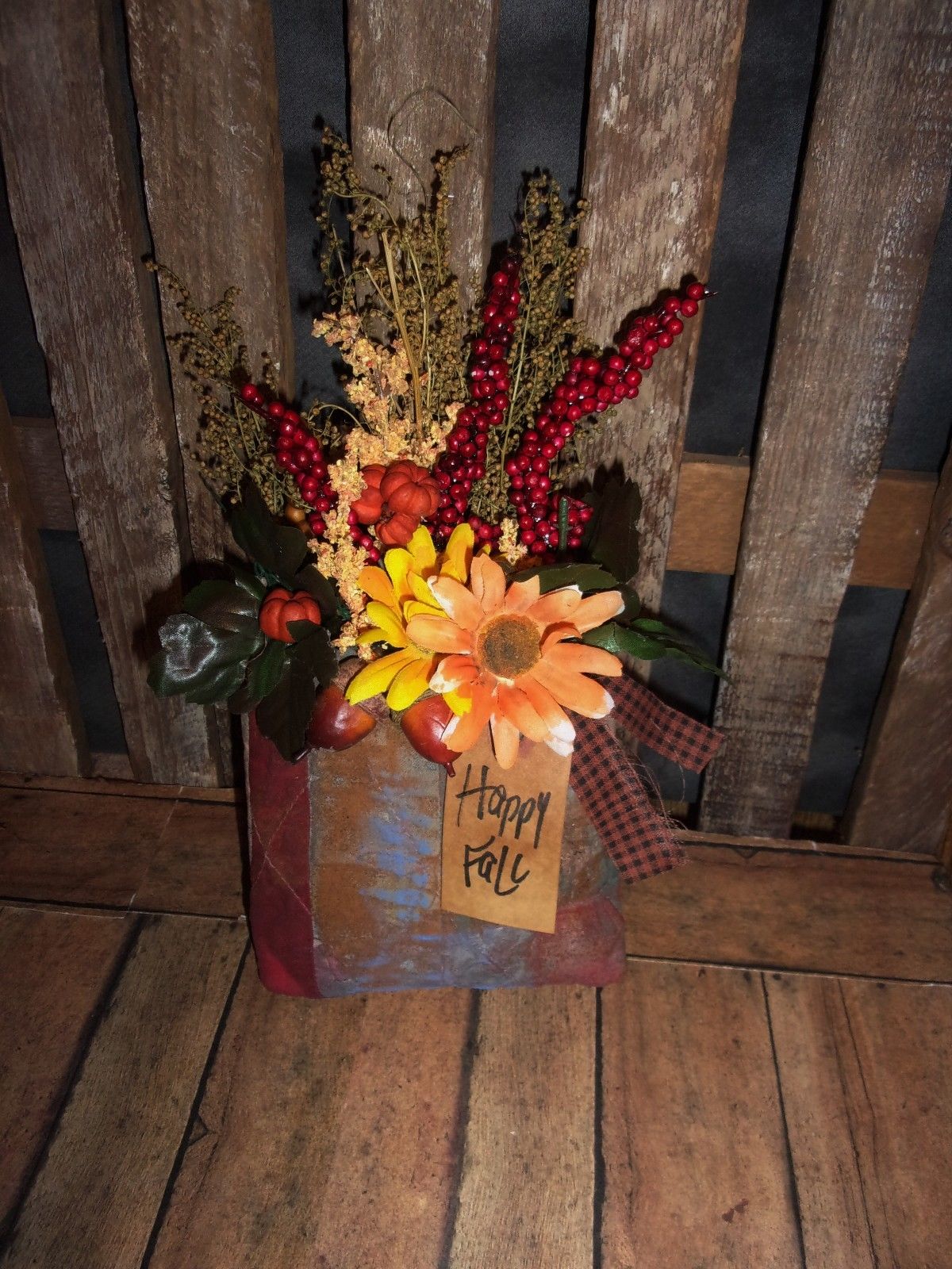 Title (ebay affiliate link): ** Primitive 11x6in Quilt bag w/flowers 11x6in - Fall Harvest Rusty doll **
