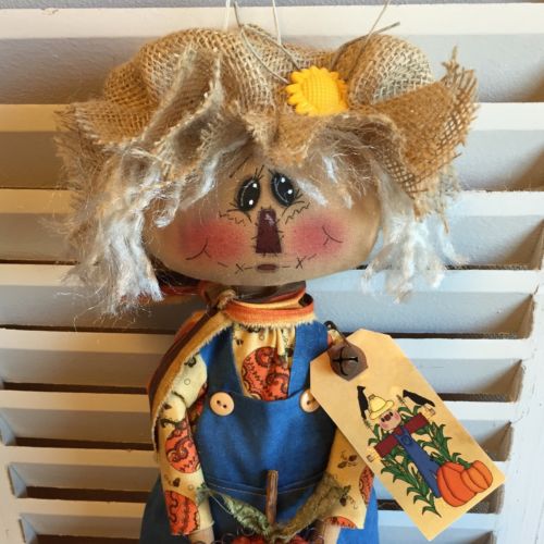 Title (ebay affiliate link): Primitive Folk Art Scarecrow Doll Fall Hang Tag Pumpkin Ornie Door Hanger Fabric