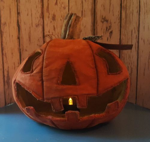 Primitive Large Halloween Pumpkin Jack O'Lantern w/ Light ~TaKe A PeeK~