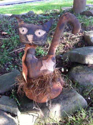 Title (ebay affiliate link): Primitive folk art Black Cat doll on pumpkin sitter cupboard tuck Fall Halloween