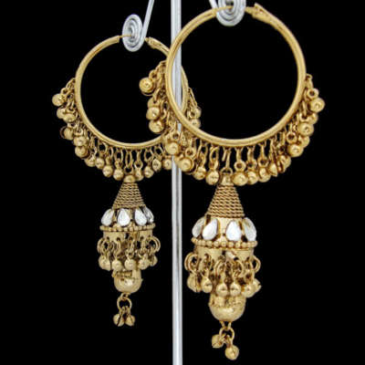 BOLLYWOOD~ANTIQUE FINISH~KUNDAN~HOOP EARRINGS