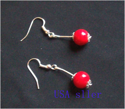 New 1 pair of Antique Silver Earrings Red Beads No.16