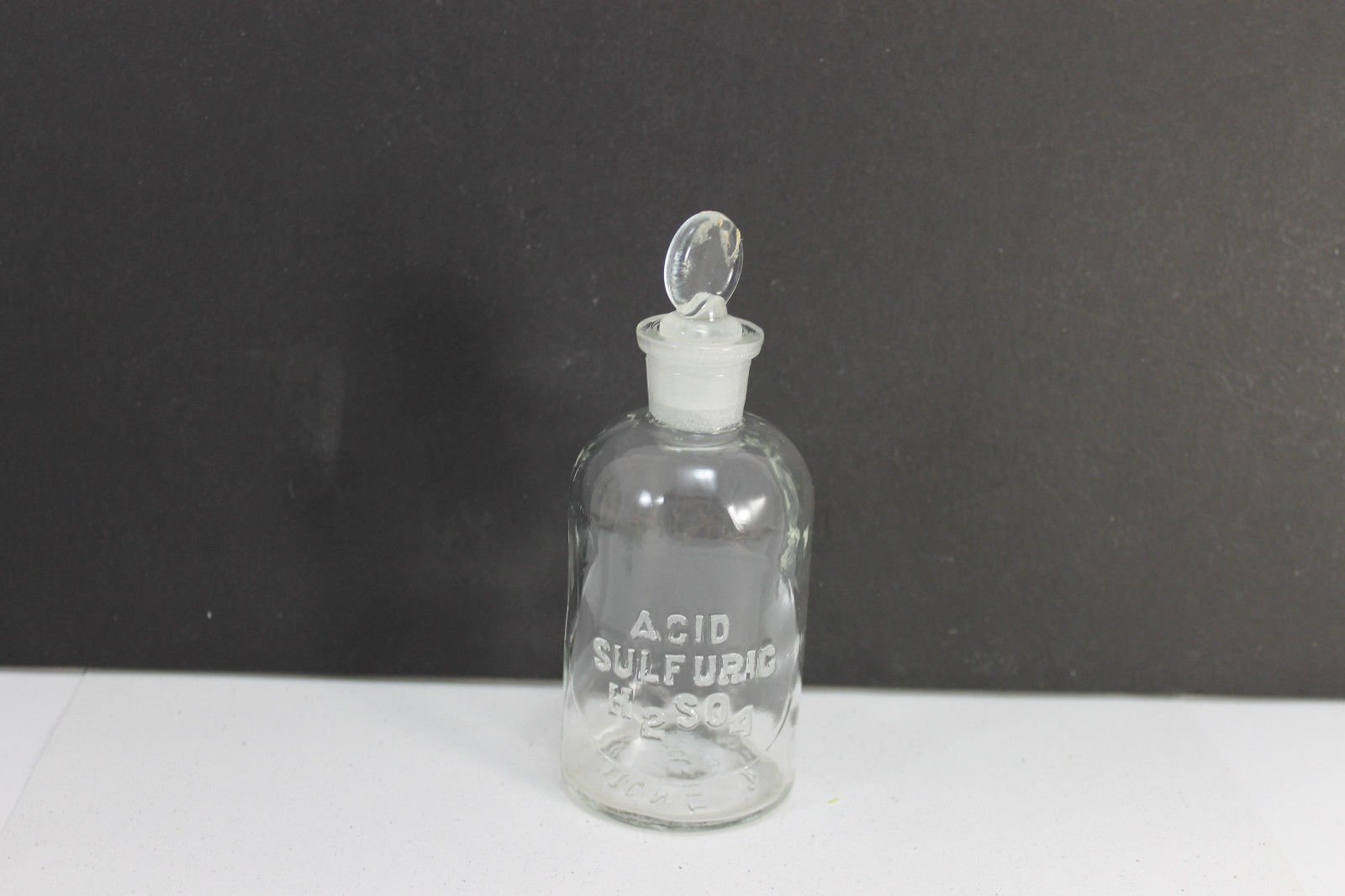 Title (ebay affiliate link): Vintage Wheaton Apothecary Acid Sulphuric H2 SO4 Glass Bottle & Stopper