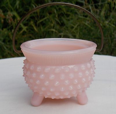 Vintage FENTON Hobnail Rare Pink Milk Glass Witch Cauldron Kettle