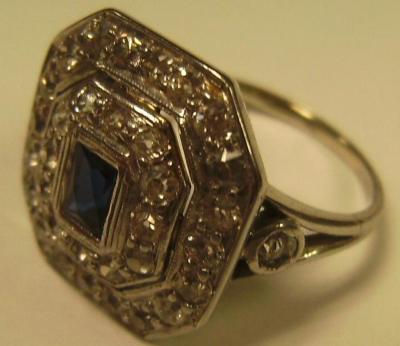 Title (ebay affiliate link): Antique Platinum Diamonds & Sapphire Ring - Gorgeous!