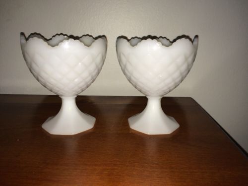 Title (ebay affiliate link): Pair Vintage Napco Milk Glass "Quilted Diamond" Footed Compotes