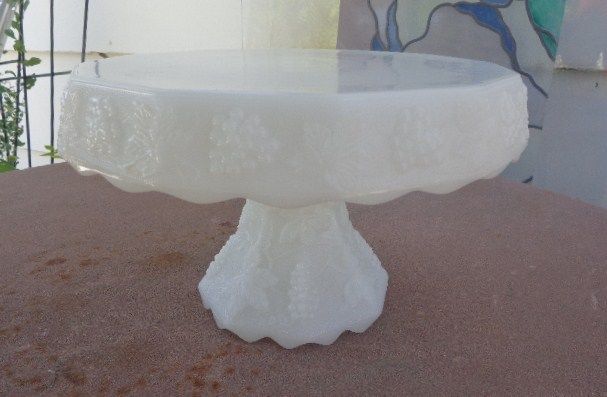 Title (ebay affiliate link): Vintage WHITE MILK GLASS PEDESTAL 10" CAKE STAND PLATE GRAPES