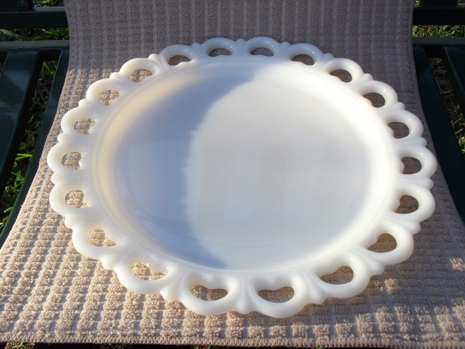 Title (ebay affiliate link): Large Vintage White Milk Glass Serving Plate Cake Platter 13 in.