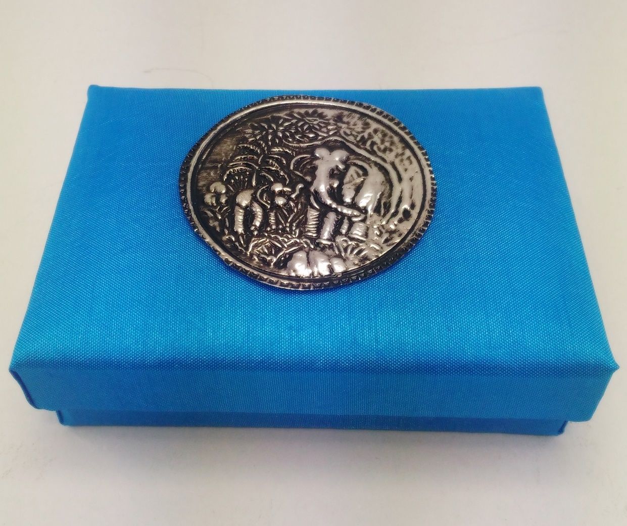 Title (ebay affiliate link): VINTAGE GIFT BOX HANDMADE THAI ELEPHANT GIFT NAME BUSINESS CARD JEWELRY Blue.