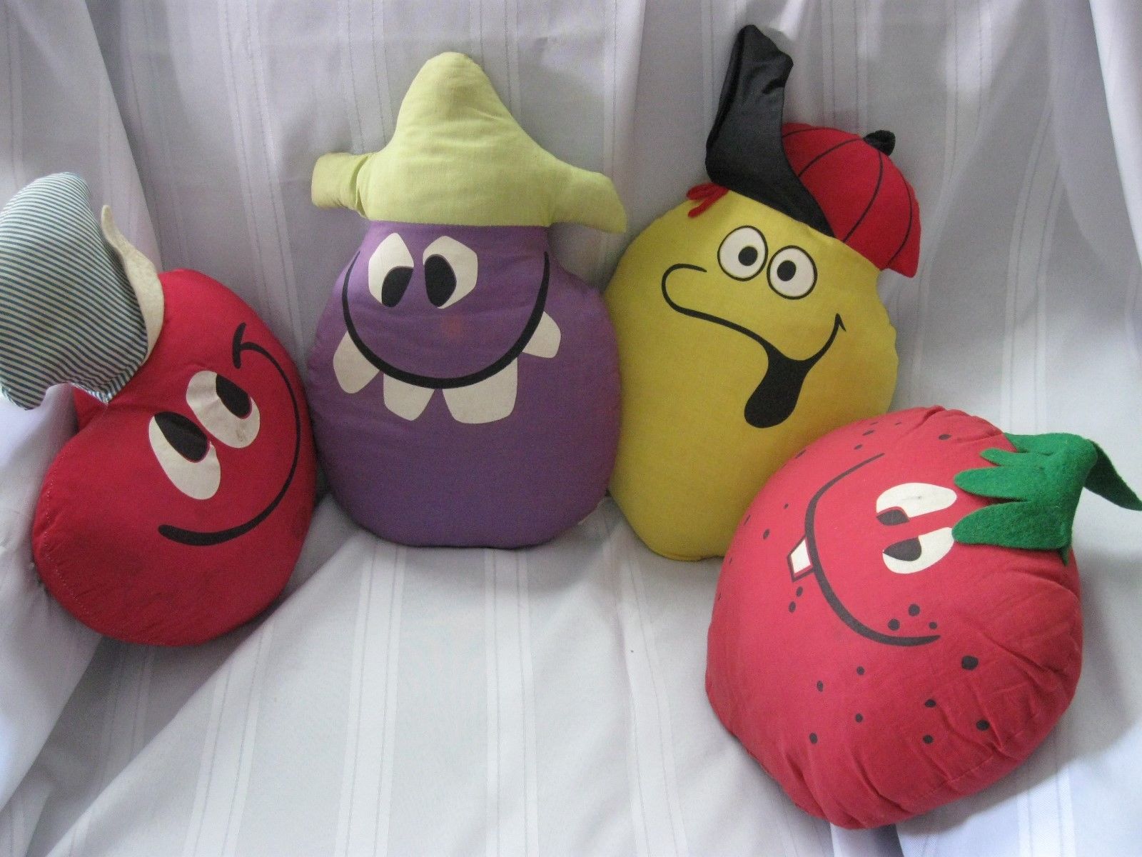 Title (ebay affiliate link): Vintage-4 Pillsbury Kool-Aid Funny Face Pillows-Cherry, Lemon, Grape, Strawberry