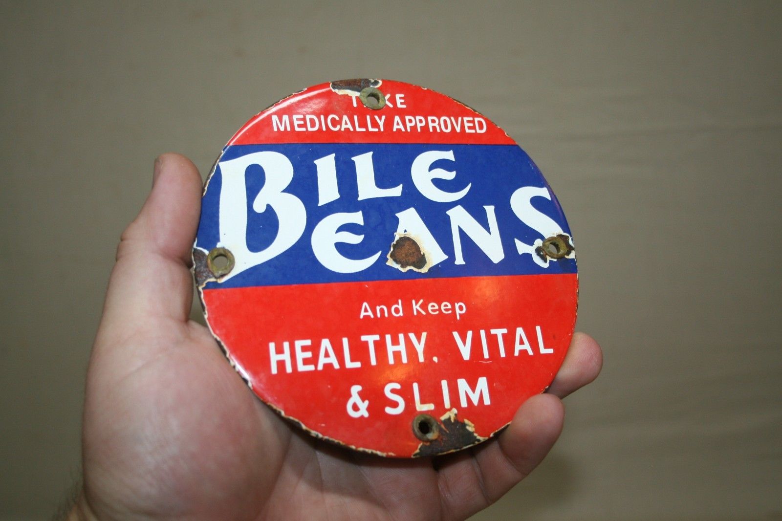 BILE BEANS PORCELAIN DOOR PUSH SIGN GENERAL STORE