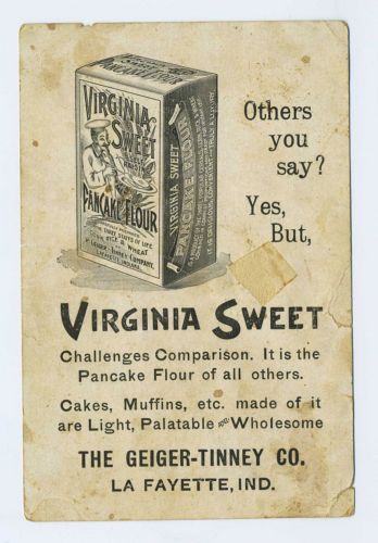 1800's Advertising Trade Card Virginia Sweet PF Geiger Tinney Lafayette IN wz15