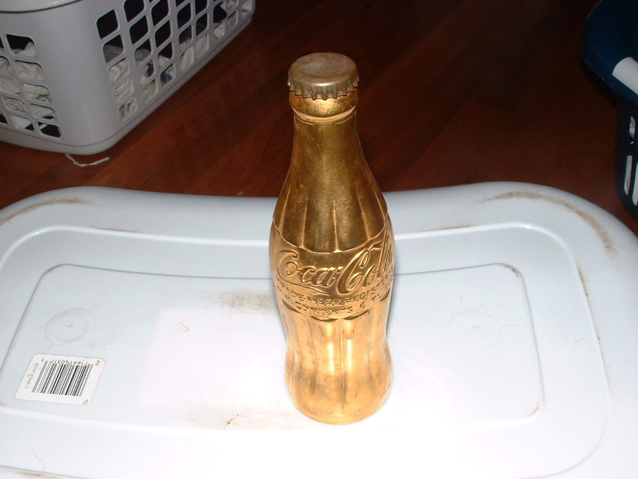 COCA COLA GOLD TONE GLASS COCA COLA BOTTLE 6 FL.OZS. BALTIMORE,MD 1950'S OLDER