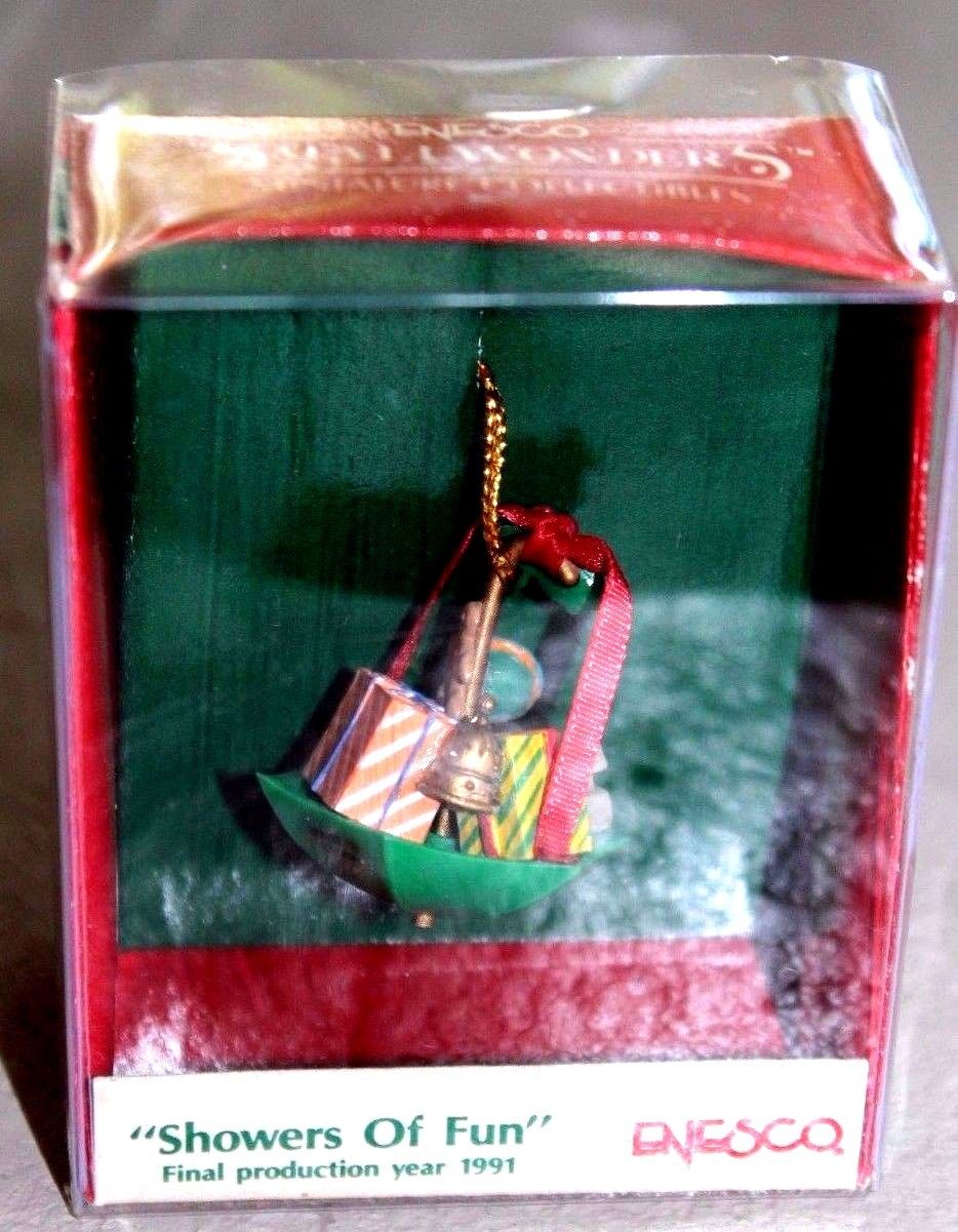 1990 Enesco Small Wonders "Showers Of Fun" Toy Umbrella Miniature Ornament NIB