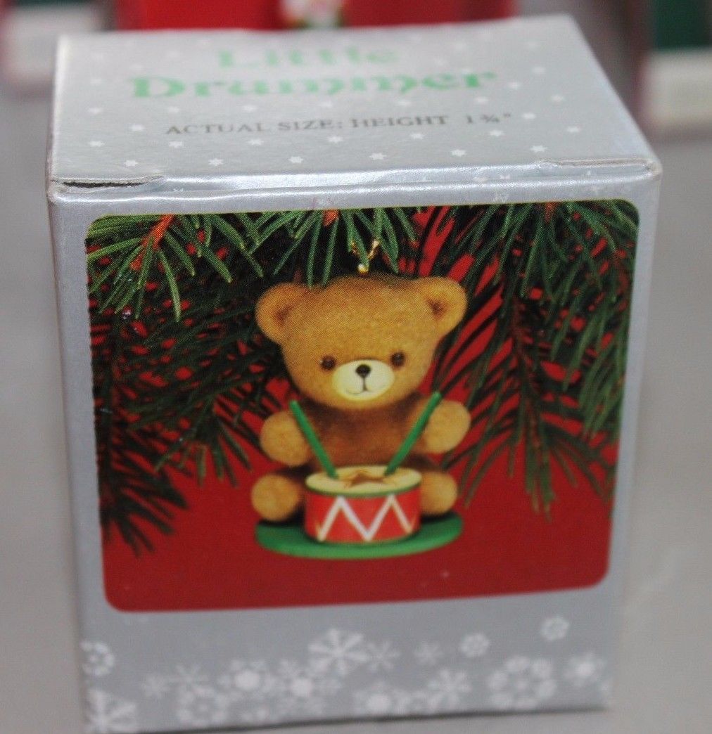 Title (ebay affiliate link): 1984 Enesco Treasury "Little Drummer" Teddy Bear Miniature Ornament NIB