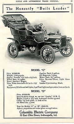 1906 COLUMBIA ELECTRIC CAR AD COLUMBIA ELECTRIC COMPANY INDIANAPOLIS IN
