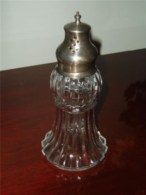 Title (ebay affiliate link): VTG DEPRESSION AREA GLASS SUGAR SHAKER W/ SILVER TOP