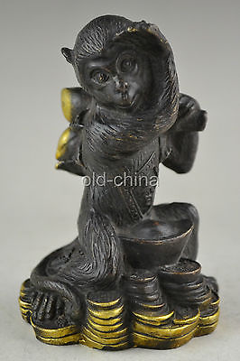 China Style Collection Vintage Old Copper Carve 12 Zodiac Animal Monkey Statue