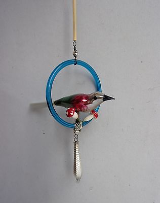 VINTAGE CZECHOSLOVAKIA BLOWN GLASS BIRD IN A GLASS RING CHRISTMAS ORNAMENTS