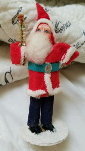 Title (ebay affiliate link): VINTAGE CHRISTMAS COTTON CLAY FACE SANTA ON CARDBOARD GLITTER BASE & TREE
