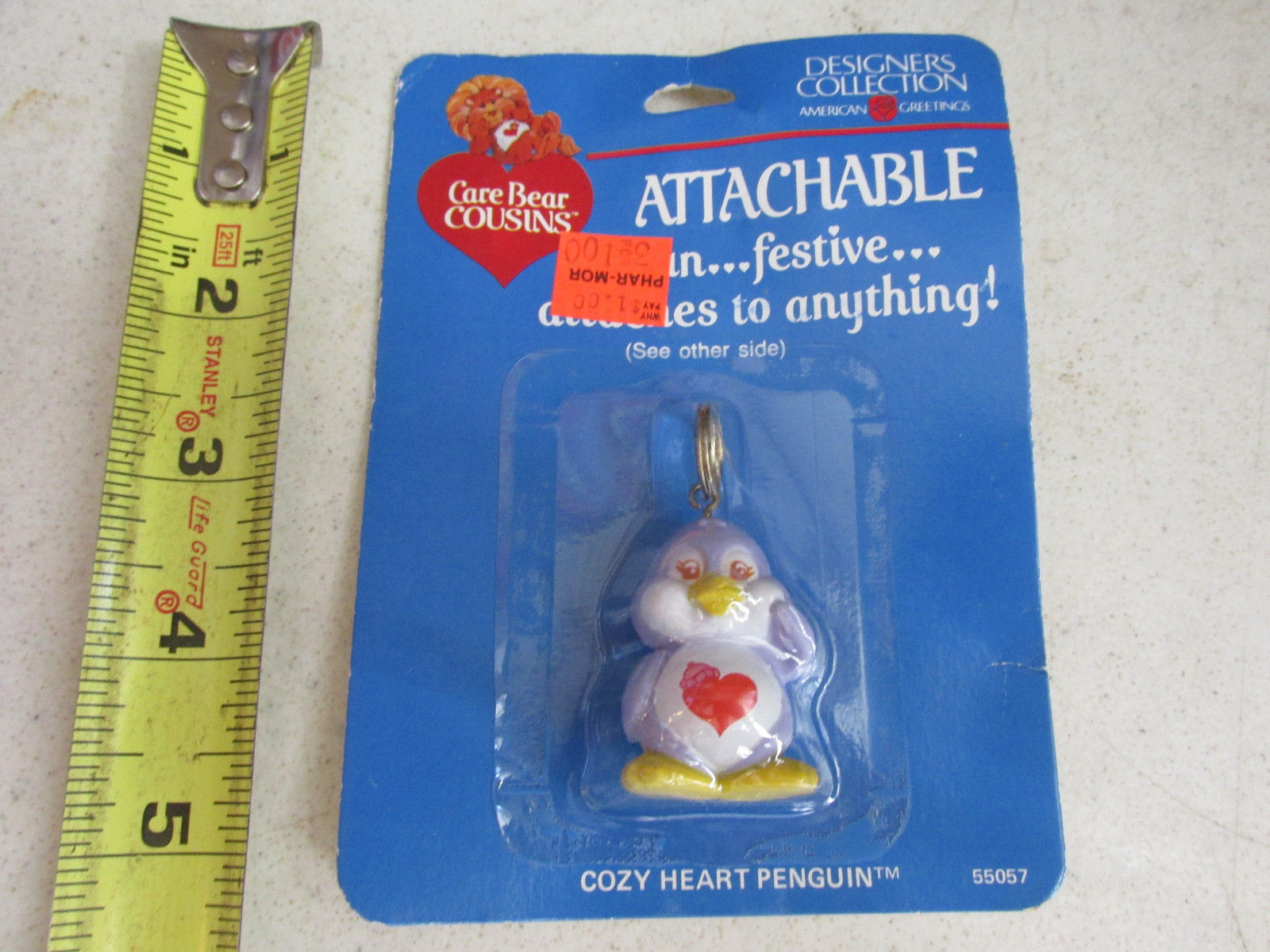 vintage care bear cousins cozy heart penquin am greetings figure mip key chain