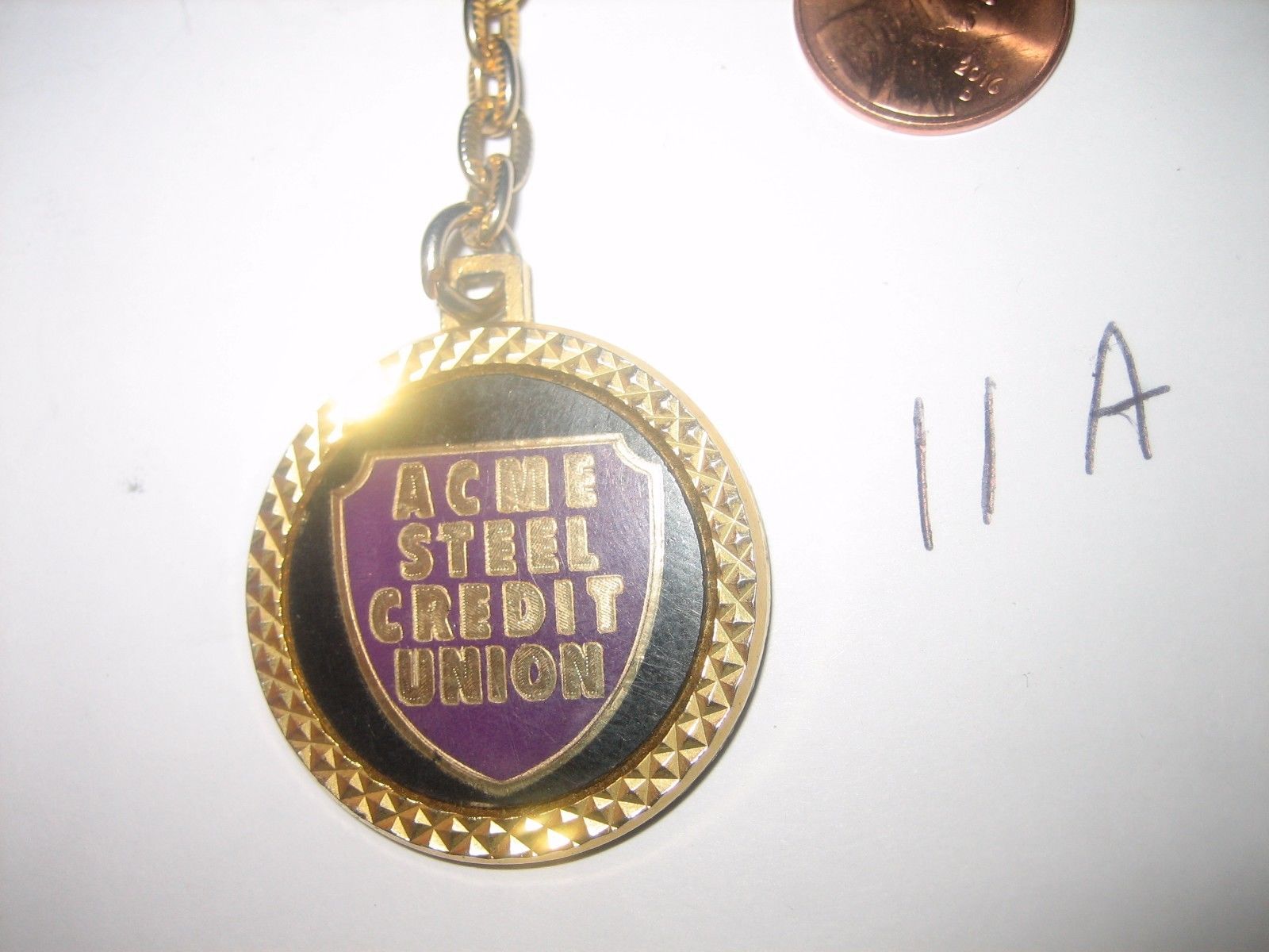 VINTAGE ACME STEEL CREDIT UNION Keychain Key Ring FOB