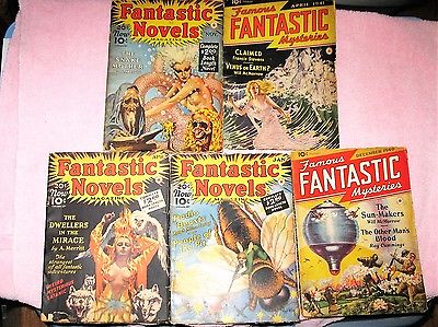 (5) Vintage 10 Cent Pulp Fantastic Mysteries Intact Fair/Poor Sci-Fi Fantasy