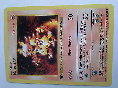 Title (ebay affiliate link): Magmar #36/102 1st Edition Pokemon Base Set Shadowless Pack Fresh NM/MT