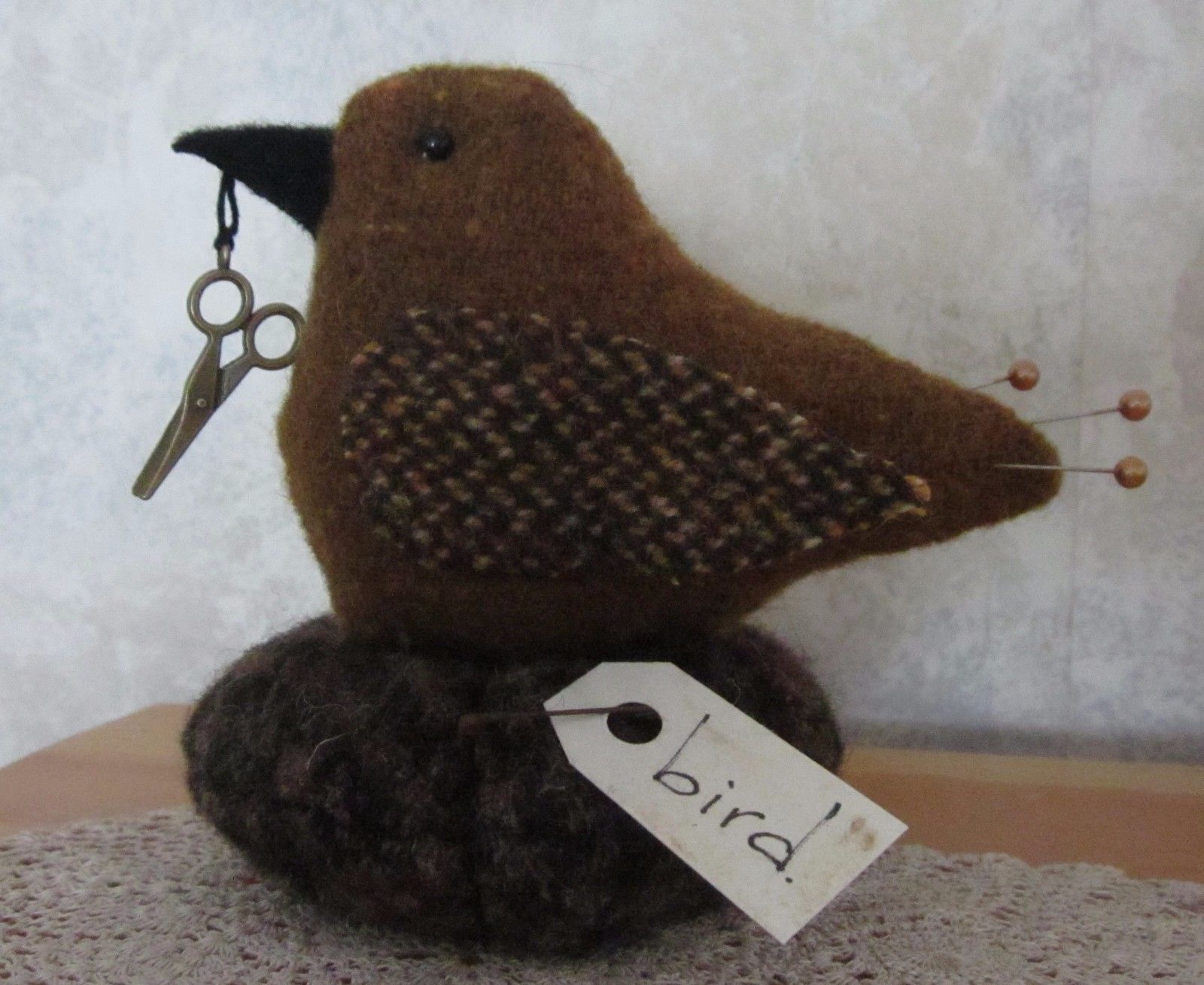 Title (ebay affiliate link): PRIMITIVE WOOL BIRD SCISSORS CHARM MAKE DO PIN CUSHION PFATT