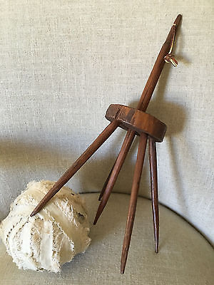 PRIMITIVE Wooden Yarn Winder Spinning Wheel Tool & Rag Ball VTG. Sewing AAFA