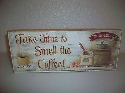 Primitive High Quality Print Wood Block TAKE TIME TO SMELL THE COFFEE Home Decor