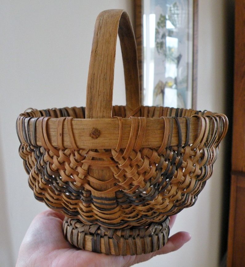 Title (ebay affiliate link): Old Cherokee Indian Splint Oak Pedestal Basket w/ Stripes, Awesome Patina