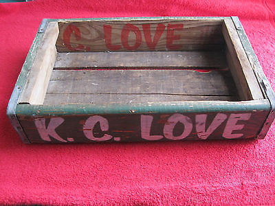 RARE Vintage K.C. LOVE WOODEN DRINK CARRIER BOX CRATE-AUTHENTIC