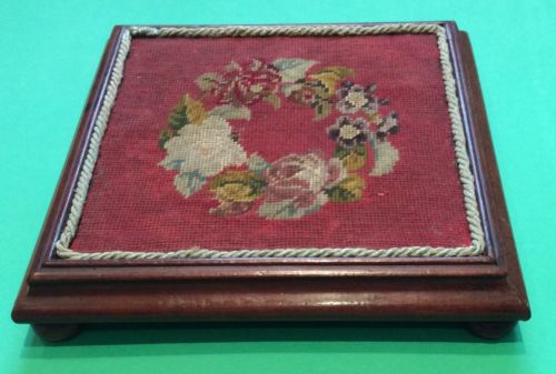 Title (ebay affiliate link): Antique Victorian Wooden Centrepiece Or Teapot Stand With Woolwork Centre